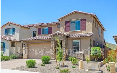 Backyard complete with lush turf, pavers, and your own private putting green, all with open mountain views and no neighbors behind—offers the perfect setup for low-maintenance living. Inside, the kitchen features a open layout with a large island and walk-in pantry. Downstairs includes a guest room and full bath. Pets with owner approval