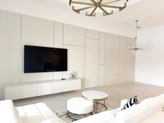 Live in style in this stunning Orlando-area estate featuring designer interiors, soaring ceilings, and gold accents throughout. The chef’s kitchen boasts a waterfall quartz island, double wall ovens, and a wine cooler. The spa-like primary bath includes a freestanding soaking tub and frameless glass shower.