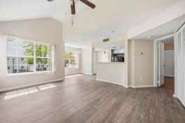Welcome to this bright and beautifully updated 2-bedroom, 1-bath condo in the sought-after Vistas at Laurel Lakes, offering 719 sq ft of comfortable, single-level living. This move-in ready unit features brand new flooring, fresh paint, and an open-concept layout filled with natural light, highlighted by a spacious living area with a cozy wood-burning fireplace and private entry for added convenience. The updated kitchen and bath provide a modern touch, while the generously sized bedrooms offer great flexibility. Additional perks include in-unit washer/dryer hookups, central A/C, and unassigned parking. Ideally located in Laurel with easy access to major highways, the Beltway, shopping, dining, and everyday conveniences, this well-maintained condo is a fantastic rental opportunity for those seeking comfort, convenience, and value.