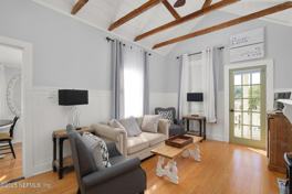 Charming, furnished 2 bedroom, 1 bathroom upstairs duplex in the heart of historic downtown St. Augustine! This second-floor retreat is filled with character and thoughtfully designed with quaint décor and beautifully restored details, complemented by modern updates for everyday comfort. The light-filled living space creates an inviting atmosphere, perfect for relaxing or hosting guests. Enjoy elevated views from your private upstairs setting, offering a peaceful place to unwind after a day exploring the city. Located just a few short blocks from downtown, you'll be surrounded by St. Augustine's best restaurants, boutique shopping, and local attractions. Plus, you're only a quick 10-minute drive to the beach, giving you the perfect balance of historic charm and coastal living. Available for a 7 month or longer lease. Application is $75 per person 18 and over. Processing fee of $125 due from Tenant at lease signing.