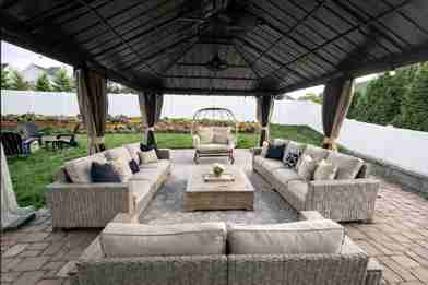 The standout feature is the exceptional backyard retreat, rarely found in the community: