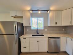 Welcome to this fully remodeled downstairs 2-bedroom, 1-bath apartment in a quiet 4-plex community. This new renovation offers modern finishes and energy efficiency throughout. Enjoy luxury vinyl plank flooring with no carpet, a stylish kitchen with new cabinets, granite countertops, and stainless steel appliances including a refrigerator, range, and dishwasher. The bathroom has been completely updated as well with a new vanity, cabinetry, and countertops.