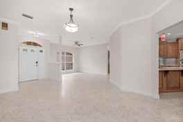 Welcome to your own private retreat in the highly desirable Scenic Hills Country Club community! This beautifully maintained 3-bedroom, 2-bathroom home offers 2,052 square feet of elegant living space, perfectly situated on a quiet cul-de-sac with stunning views of the 8th fairway. Inside, you'll find a thoughtfully designed split floor plan featuring extensive crown molding, ceramic tile flooring, and a spacious living room with soaring ceilings. French doors lead you out to a screened-in patio and a sparkling saltwater pool-perfect for relaxing or entertaining while enjoying peaceful golf course views. The kitchen is both functional and inviting, complete with a breakfast bar, oak cabinetry, upgraded appliances, and a lovely view of the pool area. A formal dining space provides the perfect setting for gatherings and special occasions. The oversized primary suite is a true retreat, featuring private French door access to the pool area-ideal for enjoying quiet mornings or unwinding in the evening. Additional features include a fully fenced yard, sprinkler system, Generator (non warranted) and solar panels for added efficiency. This home also includes lawn care and pool service, making for easy, low-maintenance living. A washer and dryer are provided for convenience (non-warranted). Conveniently located near top-rated schools, shopping, dining, medical facilities, and military bases, this home offers both comfort and an unbeatable location. Don't miss your chance to enjoy golf course living at its finest!