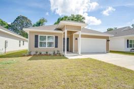 Be the first to live in this brand-new construction home in the sought-after Gaylen Oaks community of North Pensacola, offering 4 bedrooms, 2 bathrooms, and approximately 1,800 SF of modern, open-concept living. Designed with a clean, elevated style, this home features 9-foot ceilings, durable luxury vinyl plank flooring throughout the main living areas, and a bright, spacious kitchen with quartz countertops, a large center island, a pantry, and all stainless steel kitchen appliances. The primary bedroom is privately located with a walk-in closet and en-suite bathroom, while three additional bedrooms provide flexible space for guests, a home office, or everyday living. A fenced backyard is currently in progress and expected to be completed within 2-3 weeks, adding even more functionality to the space. Pets are welcome with owner approval and a $250 non-refundable pet fee; no aggressive breeds will be considered. Conveniently located just minutes from UWF, hospitals, shopping, dining, the new Costco and with quick access to I-10, this home blends modern design with everyday convenience. Residents are required to have renter liability insurance, which can be added for $11.95/month, or you can opt into the Resident Benefits Package (RBP) for $45/month, which includes renter liability insurance, HVAC air filter delivery, and on-demand pest control.