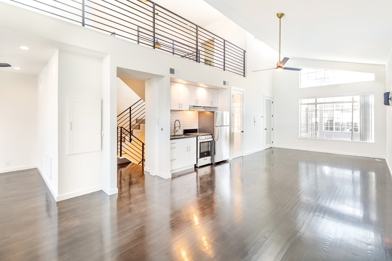 Situated on an unassuming, non-descript block in the heart of SOMA, lies this imperceivably luxurious and utterly expansive penthouse live / work, urban oasis loft. Spread over 1,500 square feet of newly constructed and meticulously designed interior spaces, this vast, open-concept loft embodies the paragon of post-industrial design, resulting in the ultimate luxury loft experience. This sprawling 2-floor, penthouse loft evokes a decidedly light and airy ambiance, due to its soaring ceilings and massive banks of custom windows. The light and airy ambiance is enhanced by the units top-floor location, which rises above the neighboring buildings rooflines, creating unobstructed views of the Financial District and the greater Downtown area. This utterly versatile property also holds the ability to function in either an exclusively residential, or in a live-work, pseudo commercial capacity, as the home also includes a massive, additional 1,600 square foot work-space / commercial gar