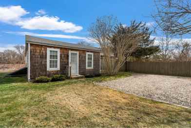 Rental Reg. # 26-281. Tucked away at the end of a long private driveway, this well maintained 750-square-foot guest cottage offers a peaceful summer retreat just moments from the heart of the Village of East Hampton. Originally built in 1921, the home blends timeless character with thoughtful modern updates. Sited behind the main residence, but separated by a lush hedgerow, the cottage enjoys complete privacy and tranquil farm field views to the rear. Relax on the patio and take in the open landscape. It's an ideal setting for quiet mornings or sunset evenings. The home features two bedrooms and one full bath, including a queen bedroom and a second bedroom with a twin bed. The open living room and dining area boast charming beamed ceilings, and there is a newly renovated galley kitchen just off the dining area. A washer and dryer are provided, as well as window air conditioning units, ensuring comfort throughout the summer months. Ideally located just over one mile from the center of the Village and less than two miles to the nearest ocean beach. The cottage also offers convenient access to the train station and Jitney stop. A delightful and serene summer getaway where one can enjoy peace and privacy without sacrificing proximity to the best of village living. ID: 737604