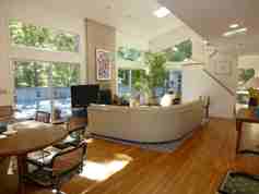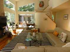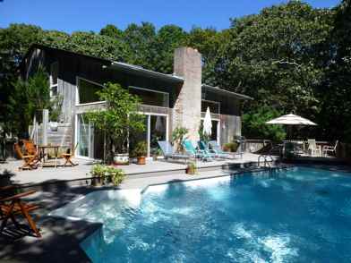 Rental Reg#: 24-1380 - Set back on a private acre at the edge of East Hampton's Northwest Woods, this sun drenched two-story contemporary offers the ultimate summer retreat. A dramatic open concept living and dining space highlighted by a soaring double height ceiling and cozy fireplace will greet you as you step inside. The adjacent eat-in kitchen, complete with a gas stove and sleek stainless steel appliances, flows seamlessly from the dining area, making entertaining easy and inviting. With four bedrooms and 2.5 baths, there's plenty of room for family and guests. The first floor primary bedroom opens directly onto a deck, creating a serene morning escape. Upstairs, you'll find two additional bedrooms and beautifully appointed baths, including a spacious primary suite featuring double sinks, a large walk-in shower, and private access to a second-story deck with its own outdoor shower; perfect after a swim in the pool or day at the beach. Outside, you'll enjoy long, sun filled days by the 18' x 36' heated pool, unwind in the hot tub under the stars, and entertain with ease on the expansive pool decking. Central air conditioning keeps everything cool and comfortable. Just minutes from the village and close to both bay and ocean beaches, the location offers the best of summer convenience and coastal attractions. Private, spacious, and designed for summer living, this is the rental you've been waiting for. ID: 735419