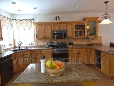 The kitchen comes equipped with a refrigerator, range, dishwasher, microwave, and wine cooler, offering both convenience and practicality. A full-size washer and dryer are also included within the home, providing added ease and eliminating the need for off-site laundry.