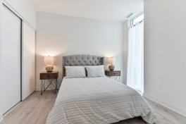 Included in this King West Toronto Furnished Condo for Rent at Minto Westside is a lovely balcony, in suite laundry, 1 parking space, air conditioning, pool and gym. All you have to do is take over the hydro and move in.