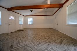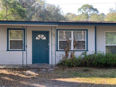 The house has recently been renovated with new tile flooring, updated kitchen, new jack-and-jill bathroom with modern tile shower, separate WC and a lovely double vanity. Second bathroom has a tub as well. Large living room boasts vaulted ceiling and gorgeous wood beams. Separate laundry room with washer and dryer included. Spacious backyard is fenced, back porch with a ceiling fan is nice for relaxing year around in the warm Florida weather. All bedrooms are outfitted with closets with ample storage space, and the coziness of the house is highlighted by all the natural light that streams in.