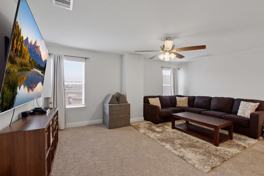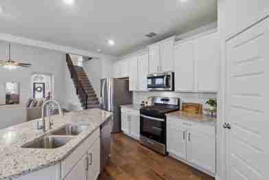 Beautiful two-story home featuring a brick and stone exterior. The first floor features an office and a primary bedroom, along with high ceilings and an open second story design that overlooks the main living area, creating a bright and spacious feel. The home showcases beautiful flooring and an elegant stair railing that adds character to the interior. The well sized kitchen features a spacious island that is perfect for entertaining and opens to both the dining and living areas, creating a comfortable and functional layout. Enjoy relaxing outdoors on the covered patio. The primary bedroom is conveniently located downstairs and includes a tub-shower combination. Upstairs offers a perfectly sized second living area along with three additional bedrooms. Conveniently located just a 3-minute drive to the elementary school, 6 minutes to the middle and high schools, and only 8 minutes to the new H-E-B. The community also offers great amenities including a park, pool, tennis courts, pickleball, and a basketball court.