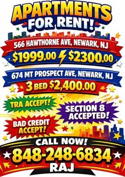 Amazing 2 bedroom, 1 bathroom apartment in Newark. Amenities included: buss stop. Utilities included: heat, internet, air conditioning and water. Is pet friendly. Date Available: Apr 24th 2026. $2,200/month rent. $2,200 security deposit required. Please submit the form on this page or contact Raj D at 848-248-6834 to learn more. This property is managed by a responsible landlord using Avail landlord software.