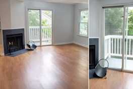 Available Jun 15th! Renovated 3BR/2BA end‑unit condo with new windows, flooring, kitchen, baths, and paint. Features stainless appliances, farmhouse sink, pantry, wood‑burning fireplace, upper‑level flex room (office/den), attic and exterior storage, and one assigned parking space plus visitor parking.