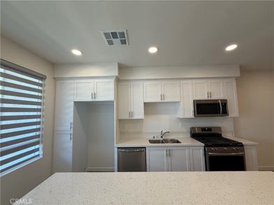 Newly built 3-bedroom, 3-bathroom townhome located in a gated community. This home features a functional three-story layout with an attached two-car tandem garage on the first floor. The second floor includes an open living area, kitchen, private balcony, one bedroom, and a full bathroom. The third floor offers the primary bedroom with its own bathroom, along with an additional bedroom that also has an attached private bathroom. The home includes newly installed blinds throughout and solar panels for energy efficiency. Water is included in the rent. There is an in-unit laundry area on the third floor with washer and dryer hookups available. Conveniently located near Rodeo 39 with easy access to the 22 Freeway.