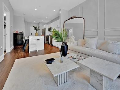 in unit laundry, central AC, stainless steel appliances, luxury building, gym on site, shared roof deck, pets allowed for fee, hardwood floors throughout, 5 min walk to Blue Line (Maverick T stop), also close to Ferry. Can come furnished or unfurnished
