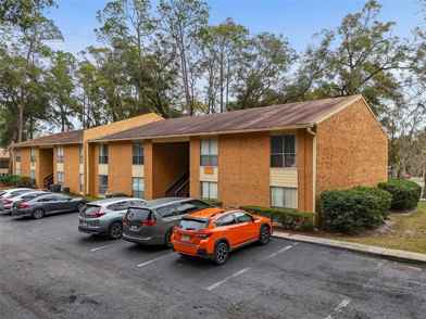 One or more photo(s) has been virtually staged. Welcome to this spacious 3-bedroom, 2-bathroom ground-floor condo in the sought-after Creeks Edge community. Enjoy the comfort of laminate wood and tile flooring throughout, NO Carpet! Flooded with natural light from numerous windows, this move-in-ready home features a large open space kitchen with wood cabinets, a stylish tile backsplash, and plenty of counter and storage space. The primary bedroom boasts abundant closet space, and the home includes a washer and dryer for added convenience. Step outside to relax on the screened porch or use the outdoor storage closet for your extras. Creeks Edge offers fantastic amenities, including a swimming pool, fitness center, clubhouse, tennis courts, and a sauna. Surrounded by mature trees and a beautiful creek, the community is just minutes from the University of Florida, UF Health, downtown Gainesville, and local shopping and dining options. In addition, it is also on a direct bus line to UF and Shands.