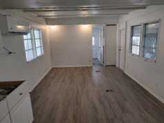 Nicely done 2 bedroom 1 bathroom remodeled last year in the great location of Colonial Manor MHP Palmetto, an adult 55 plus community. When remodeled in late 2024 New Tiled wall with tub/shower and faucet were added in the bathroom, new toilet, new vanity, sink and faucet. New kitchen sink with pull out sprayer faucet, new cabinets with new granite countertops. Refrigerator, microwave and stove. All new paint at that time. New Vinyl floors throughout. Ceiling fan in bedroom. A large carport and a big backyard. New and mini split air and heat. Storage shed. Large Florida room. Just off US301 near walmart and shopping plaza. $1,450 a month rent includes use of the club house, laundry, game room and facilities, sewer and garbage pickup. 1450 security deposit