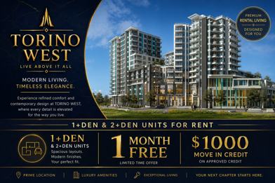 Brand New 1 Bed + Den at Torino West | 1 Month FREE + $1,000 Credit!