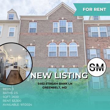 Welcome to your dream home at 5462 Stream Bank Lane in the highly sought-after Greenbelt Station community! This luxurious 3-bedroom, 2.5-bathroom townhome with a 1-car Garage offers the perfect blend of comfort and convenience. Enjoy the spacious open floor plan, with plenty of natural light flowing through every room.