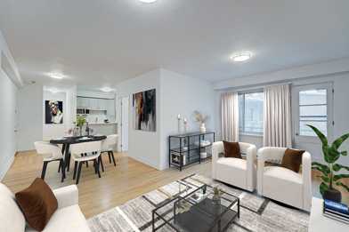Au cœur de Ville Mont-Royal, un magnifique condo spacieux et entièrement rénové vous attend! Très lumineux, il comprend un grand balcon et de superbes planchers de bois franc. Deux chambres à coucher. Salle de bain moderne. Cuisine rénovée à aire ouverte avec comptoir-lunch, rangement optimisé et électroménagers inclus. Vaste salon/salle à manger à aire ouverte. Climatisation murale. Stationnement, casier de rangement et eau chaude inclus. Immeuble en béton bien géré. Emplacement de choix. Disponible immédiatement.