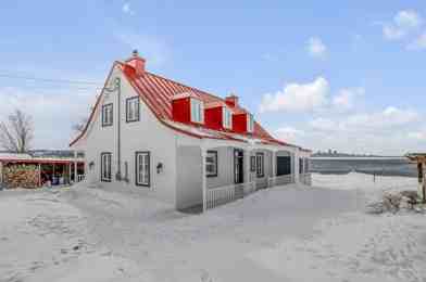 Exceptional heritage property with panoramic 180° views of the St. Lawrence River. A former boathouse steeped in history, this single-family home offers 4 bedrooms, 2 full bathrooms, and bright living spaces with unique charm. Features include a private pool and a large, fully equipped outdoor kitchen. Enjoy a private and enchanting location just minutes from the bridges. One-year lease. A rare find for discerning clients.