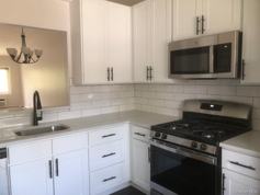 Don't miss this gorgeous, completely renovated, oversized (almost 900 sf) 1 bedroom condo style apartment featuring a private entrance, soaring cathedral ceilings, and no upstairs neighbors! This sun-filled unit offers an open-concept layout with a spacious living/dining area and an appealing updated eat-in kitchen complete with new white shaker cabinets, quartz countertops, pretty backsplash, ceramic tile flooring and stainless steel appliances, including a refrigerator, gas range, dishwasher and microwave oven. The generously sized bedroom includes two double closets - and one is professionally organized, and the just updated ceramic tile bathroom is beautiful, and features white tile with black accents a pretty vanity and a shower/tub combination. New luxury vinyl tile which looks like wood throughout - except kitchen and baths have tile floors. No carpet here!!! Additional highlights include in-unit full-size washer and dryer, two wall-mounted A/C units, and ample closet space throughout. Enjoy plenty of free parking just steps from your front door. Located in the top-rated Nanuet school district, this apartment is within walking distance to NYC-bound and local transportation, shopping, and just minutes from all major highways-making commuting a breeze. Cold water is included in rent. Tenants pay for gas (heat, hot water, cooking gas, dryer) and electricity (avg. $150/month, varies seasonally). Maximum occupancy is 3 people. One cat may be considered with an additional $50/month and a small dog might be considered. Applicants must have very good credit (700+) and monthly household income of at least $7,800, or substantial liquid documented assets. Don't wait - this one won't last!