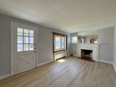 Inside, the living area is filled with natural daylight that highlights the clean lines and neutral color palette. LVP flooring flows throughout, creating a cohesive and low-maintenance environment. A decorative fireplace adds character and a cozy focal point, making the space ideal for relaxing evenings or hosting guests.