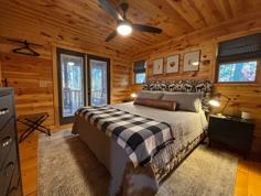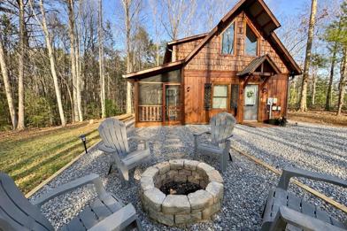 Welcome to this stunning 2 bedroom, 2 bathroom cabin located on Whispering Hills Road in Murphy, NC. This modern and fully furnished cabin features 2 bedrooms (1 king + 2 twins) and 2 full bathrooms, a cozy living area with fireplace and smart TV, and a fully equipped kitchen with a new LG refrigerator. A laundry closet with washer and dryer is available for guest use. Enjoy porch access from both the living room and downstairs bedroom, plus an outdoor fire pit and a grassy backyard area perfect for family-friendly activities, lawn games, or simply relaxing in the fresh mountain air.