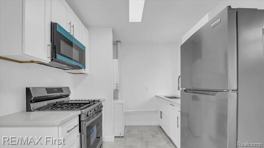 Renovated two bedroom home in north Hazel Park. New kitchen with dishwasher and stainless steel appliances plus quartz countertops. All new flooring throughout plus fresh interior paint. Custom new bathroom. Shed for storage. Owner is adding central air. Very clean and ready to move into. Owner requires a month and half security deposit and one year minimum lease term. 650 credit score and 12 month rental history is preferred. $75.00 ReMax compliance fee due at lease signing. Tenant is responsible for lawn, snow and all utilities.