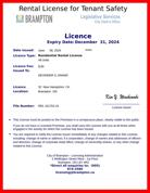 Residential Rental Licensed Unit as required by the City of Brampton.
