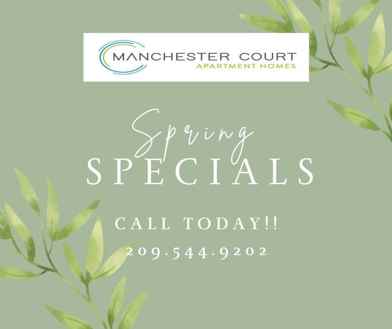 Be the center of attention with your friends and family when you make Manchester Court Apartments in Modesto, CA your new home! Our homes feature spacious one and two bedroom apartment floor plans in Modesto, full-size washer and dryers and appliances, ample storage space, kitchens featuring full appliances and open living areas. Select floor plans also offer wood-burning fireplaces and separate dining rooms. You will also be able to relax and unwind daily on your own private patio or balcony. Our beautiful apartments in Modesto, CA offer a 24-hour business center, fitness center, two resort-style swimming pools and a sparkling spa. Each apartment home comes complete with an outside storage closet, central heat and air conditioning as well as an on-site laundry facility. We are one of the few Modesto apartment communities in the region that is pet-friendly and will gladly welcome your four-legged family member. These features and amenities are some of the reasons that make Manchester Court the premier address in Modesto! At Manchester Court apartments in Modesto, California, we invite you to experience the charm of a peaceful and private atmosphere, as well as the convenience of having all your needs within walking distance away. Our community is just minutes from shopping, dining and local area attractions such as the Gallo Center of Performing Arts, Vintage Faire Mall, and Highway 99. Manchester Court is situated near Heald College, Paul Mitchell, Modesto Junior College, and Humphreys College making our community an exceptional choice for Modesto student housing. Luxury living, with all the conveniences of the city, just minutes away from home. Call today to schedule a tour with the friendliest and most professional staff in town!