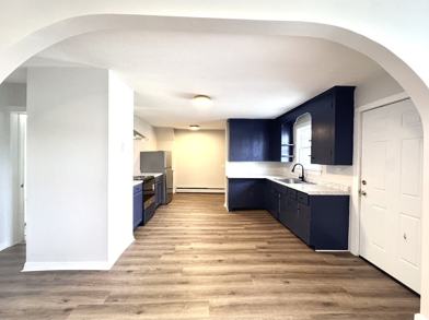 Charming and sun-filled, fully updated 2 bedroom / 1 bath apartment in an ideal downtown location. Steps to biddeford's best cafes, restaurants, breweries, boutiques an art galleries, yet in an amazingly quiet and peaceful spot. This first floor fully updated unit features one large primary bedroom complete with a walk-in closet (!) and a second smaller bedroom ideal for an office, child or teen's room, or potential roommate. HUGE kitchen features brand new stainless stove, fridge and stylish range hood. New sink, cabinets, counters, and flooring throughout. IN UNIT LAUNDRY hookup in a spacious separate laundry area complete with additional cabinets, or, alternatively, this area can be used as a cozy dining nook for your morning coffee. Tons of counter and cabinet space for those who love to cook! The separate living room is accented by a sweeping archway, adding to this apartment's charm and appeal. Chic new bathroom has a spacious tub and all new fixtures and lighting, as well as plenty of extra storage in the built-in cabinetry. Enjoy easy and convenient off-street parking with your own private parking space steps from your front door. Heat, water, sewer, trash removal, and plowing all included in rent. Tenant is responsible for electric. Pets considered on a case-by-case basis with additional pet rent/deposit. Lovely, upscale building has been undergoing major upgrades and is run by a conscientious management co. Minutes to beaches, trails, UNE, route 95- 20 minutes to Portland, 40 mins to Portsmouth, 1.5 hrs. to Boston. Applicants must have references, pass a background check, and have proof of employment/rent payment capability. First month's rent + security deposit is required by bank/cashiers check to move in. 1 year lease, available May 1st. No smoking of any kind on premises.
