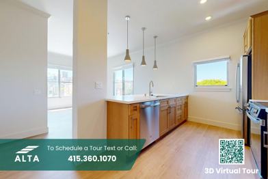 Located in the heart of the Marina District, Residence #306 offers a bright and well-designed single-level layout in a professionally maintained elevator building just moments from some of the neighborhood’s most popular shopping, dining, and waterfront destinations. Light hardwood flooring runs throughout the home, connecting the open living and kitchen area with two well-separated bedrooms. The kitchen features warm wood cabinetry, quartz countertops, stainless steel appliances, and a breakfast bar that opens naturally into the living space. Both bathrooms include contemporary finishes with glass enclosures, and additional hallway storage adds everyday convenience.
