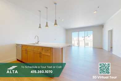 Located in the heart of the Marina District, Residence #302 is a bright top-floor home offering an expansive single-level layout with floor-to-ceiling windows, a private balcony, and sweeping rooftop and neighborhood views. Light hardwood flooring runs throughout the main living areas and bedrooms, while recessed lighting and clean crown molding create a polished, modern feel. Large sliding glass doors bring in exceptional natural light and open directly to a private balcony, extending the living space outdoors.