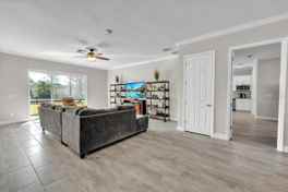 This Lennar Liberation floor plan has 10' ceilings throughout with crown molding and 8' doors making the home feel even more spacious and open. The attached multigenerational / in law / guest suite has a private entry, single car attached garage, family room, kitchenette, laundry, full bath, and large bedroom with walk in closet. It also has a private backdoor leading out to the screened lanai. Perfect for an aging parent or guest.