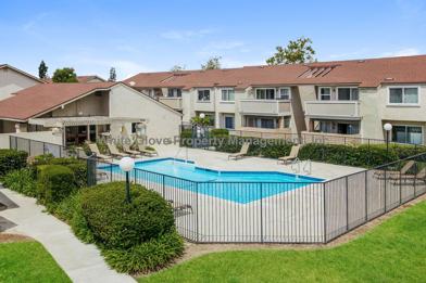 Great 2-bedroom condo located in a desirable gated community in Cypress. The home features a spacious living room with recessed lighting and a sliding glass door that opens to a private balcony, providing great natural light and indoor-outdoor flow. The kitchen offers ample cabinet space, a dedicated dining area, and a convenient laundry closet with washer/dryer hookups. Both bedrooms are generously sized, and the unit includes a full hall bathroom. Additional features include fresh interior paint, central AC and heat, and one assigned parking space. Residents also enjoy access to the community pool and spa. Water and trash are included in the rent. No pets, please.