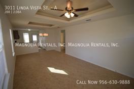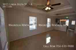 3011 Linda Vista St #A is a 2 bedroom, 2 bathrooms apartment for rent. It is located in Edinburg. It has apartment amenities including in-unit laundry, ceiling fan, high ceilings, assigned parking, microwave, and air conditioning. Cats and dogs are allowed, making it a pet-friendly apartment.