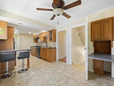 The property features spacious living areas complemented by central heating and cooling, including air conditioning and ceiling fans for your comfort.