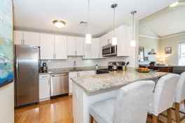 Experience elevated living at a stunning two-level penthouse ideally located in the heart of Melrose. This top-floor residence showcases sweeping views best enjoyed from your private rooftop deck, perfect for relaxing or entertaining. Inside, soaring cathedral ceilings define the open living and dining area, while hardwood floors and expansive windows create a bright, airy atmosphere. The unit features in-unit laundry and bike racks in this well maintained building for added convenience. Enjoy access to the MBTA Commuter Rail just a short walk away, offering a quick ride to Boston. Moments from downtown Melrose, Whole Foods, local cafes, restaurants, parks, tennis courts, and the Middlesex Fells Reservation for outdoor recreation, this home delivers both lifestyle and location. No pets, first month and security deposit required at signing, two parking spaces available. Text list agent for limited group showings. Available July 1.