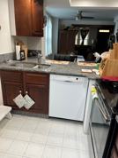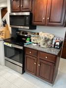 Generous cabinetry in the kitchen with granite breakfast bar.