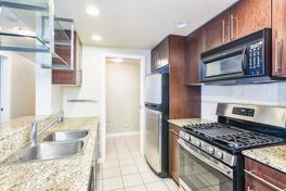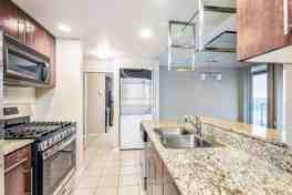 Suite features include a gas stove, full size appliances, and ample of counter space. The den/flex space is a great home office, and each bedroom comfortably holds a queen size bed. Facing west, the suite has plenty of natural light in each room.
