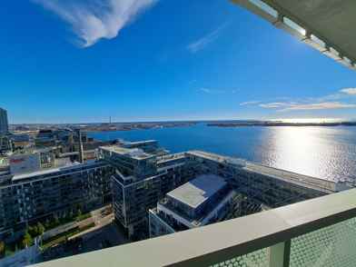 Light-filled, 753 sq ft, 2-bedroom, 2-bathroom suite at Pier 27 available December 1st. Modern kitchen with integrated appliances; large bedrooms, both with windows; floor-to-ceiling windows; mirrored closets; and a huge, South-facing balcony with lake views. One parking spot and one storage locker included. Free internet.