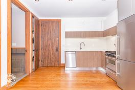 This 2 bedroom apartment features spacious living room, queen sized bedrooms, stainless steel kitchen, modern bathroom, hardwood floors, and windows that let in natural light throughout.
