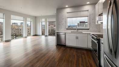 Apartment interiors are just as impressive with their wood plank-style flooring, nine- to 18-foot ceilings, stainless Energy Star appliances, Nest Thermostats, and quartz countertops, just to start. Select homes offer separate dining areas, wine fridges, and private balconies with views of the city, capitol, mountains and green space in one. After all, why should you have to choose?