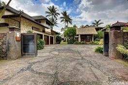 Haleiwa Beachfront "SHANGRI LA" Estate over 1/2 Acre. Expansive front and beachside yards. Heated Pool and Jacuzzi. Property has 101 Lineal Feet of Beach Frontage! Perfect "GETAWAY" FOR YOUR FAMILY/FRIENDS OR COMPANY RETREAT! 2 dwellings on property are available to rent. Fully Furnished, both 2 Story. MAIN HOUSE IS A 2 BEDROOM/3.1 BATH (BEDROOMS HAVE CENTRAL AC). Master bedroom is an upstairs ONSUITE with a private lanai and separate office space; Guest bedroom is an ONSUITE downstairs. Included in the Main house is a Grand Kitchen, Living and Dining Rooms, Laundry Room and a comfortable MEDIA ROOM WITH A LARGE SCREEN TV(this room also has central A/C). GUEST HOUSE is a 3 bedroom/3 bath (all ONSUITES with LANAIS and central A/C in each one). Guest house has a downstairs living room and kitchen. Separate large laundry room. SITUATED BETWEEN BOTH DWELLINGS ARE THE POOL AND JACUZZI. MAIN DWELLING HAS OCEAN/BEACHSIDE WRAP AROUND LANAI WITH TEAK DINING TABLES AND COMFORTABLE LOUNGE CHAIRS! Perfect area for entertaining and dinner parties! POOLSIDE LANAI WITH LOUNGE CHAIRS is a great family gathering place! GARAGE AND APT. NOT AVAILABLE. Base rent $70,000. per month plus fees.