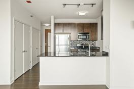 As you would expect from a newer luxury property, the apartments here are top notch. Kitchens feature granite countertops combined with a beautiful glass tile backsplash, designer cabinetry and stainless steel appliances. Plank hardwood flooring runs throughout every living space (the bedrooms are carpeted) and each unit was a washer and dryer. Select units have a balcony, and higher floors offer gorgeous city views.