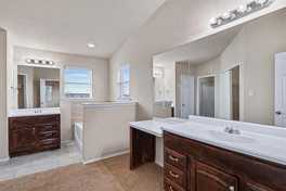 separate vanities, and walk-in closet. The open-concept kitchen makes meal prep time easy to watch the kids or enjoy