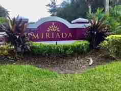 FIRST FLOOR. UNIT 3BD/2BA plus OFFICE/DEN. NEW PAINT THROUGHOUT. NEW WASHER & DRYER. NEW BEDROOM CARPETING. NEWLY REMODELED SHOWERS. Beautiful Cherry Wood Flooring in Living Rm, Dining Rm. and Den. This model is the LARGEST one in this community offering 1,192 sq. ft. of living space. Includes Stainless Steel Appliances, Refrigerator, Gas Stove, Built-in Microwave, Granite Countertops, Breakfast Bar, Spacious Guest Bathroom, Washer, GAS Stove, and GAS Water Heater. Gas makes it more economical on power bill. The French Doors of the Living Room lead you to the Office/Den which is perfect for those working from home or Office/Study Room. Ceramic in Baths and Kitchen. Cable readily available. Amenities include a Pool, Fitness Room, Clubhouse, Playground, and Car Wash area. Miriada Condominiums offers a Gated Community centrally located, close to major highways: SR408, SR528, the Orlando International Airport, and Public Transportation. Close to major attractions. Water utility is included. Shopping and a variety of restaurants are around. Start enjoying Florida living today!