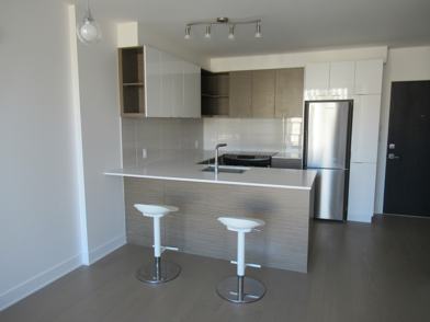 Details au sujet de l’appartement - 550 p.c. selon les plans du promoteurs - Cuisine moderne avec appareils électroménagers haut de gamme : Poêle, réfrigérateur, four a micro-onde et lave-vaisselle inclus Appareils laveuse et sécheuse inclus - Plafond de 9 pieds - Grandes fenêtres avec vue sur le centre-ville de Montréal - 1 chambre à coucher fermée - A/C Central - 9e étage
