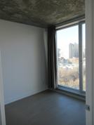 Details about the unit: - 550 sq. ft. apartment as per the developer`s unit plan. - Modern kitchen including appliances: stove, fridge, microwave and dishwasher - En-suite laundry. - 9-foot high concrete ceiling - Large floor to ceiling windows with view of downtown Montreal’s skyline - 1 closed bedroom - Central A/C - 9th floor